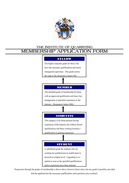 Membership of the Institute is open to everyone in a position of responsibility with appropriate qualifications and/or experience employed in, or supplying to, the surface mineral and quarrying industries.